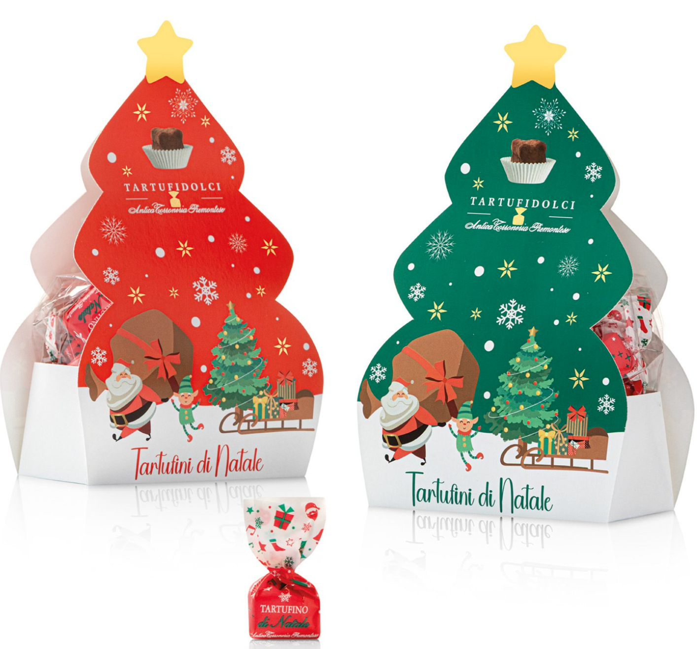 En lækker blød chokoladetrøffel i fin juletræsæske - rød eller grøn