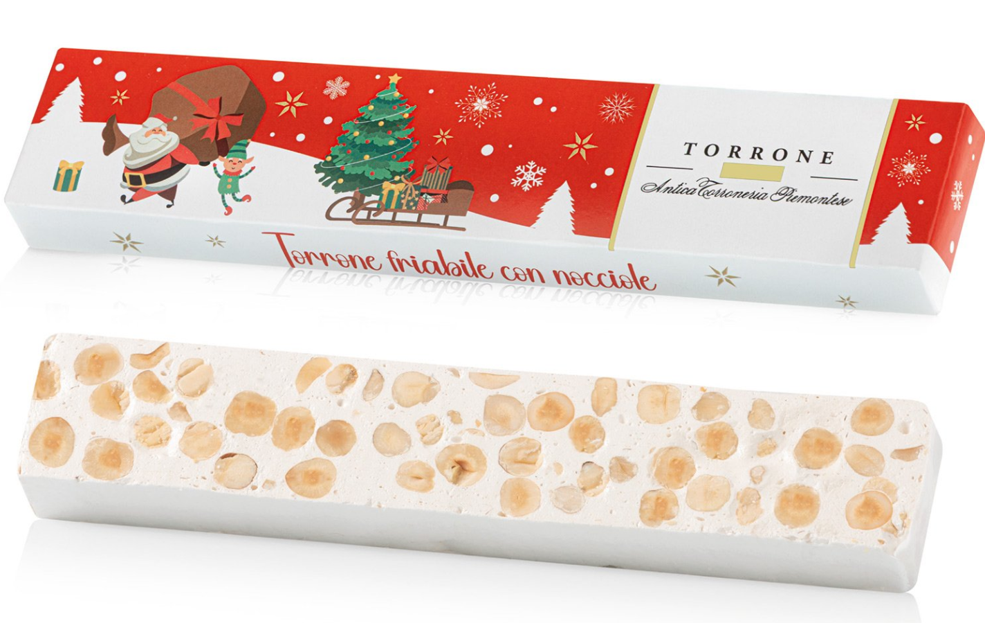 Italiensk nougat, fyldt med honning, sukker og hasselnødder i juleindpakning.
