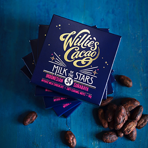 Willie's cacao Milk of the Stars er en 54% indonesisk mælkechokolade med bløde karamelnoter.